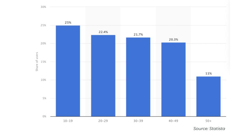- 19,5% от жените потребители на TikTok са на възраст между 18 и 24 години