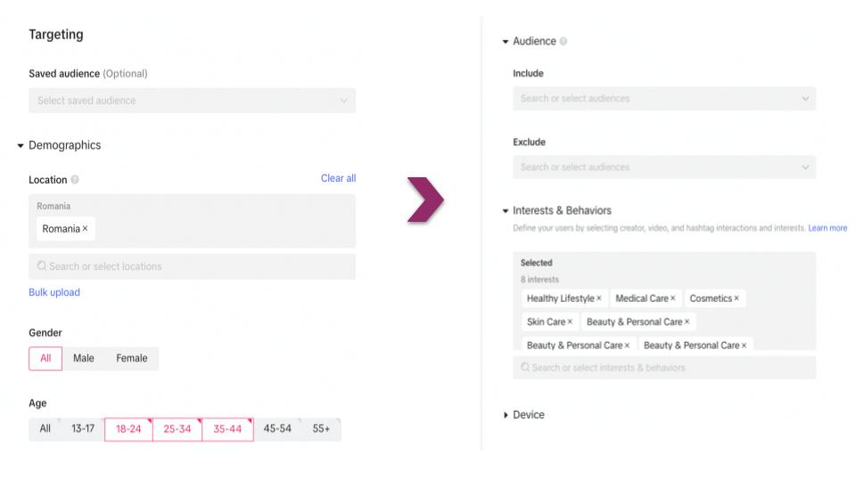 - Interests & Behaviours: Имате право да таргетирате по: