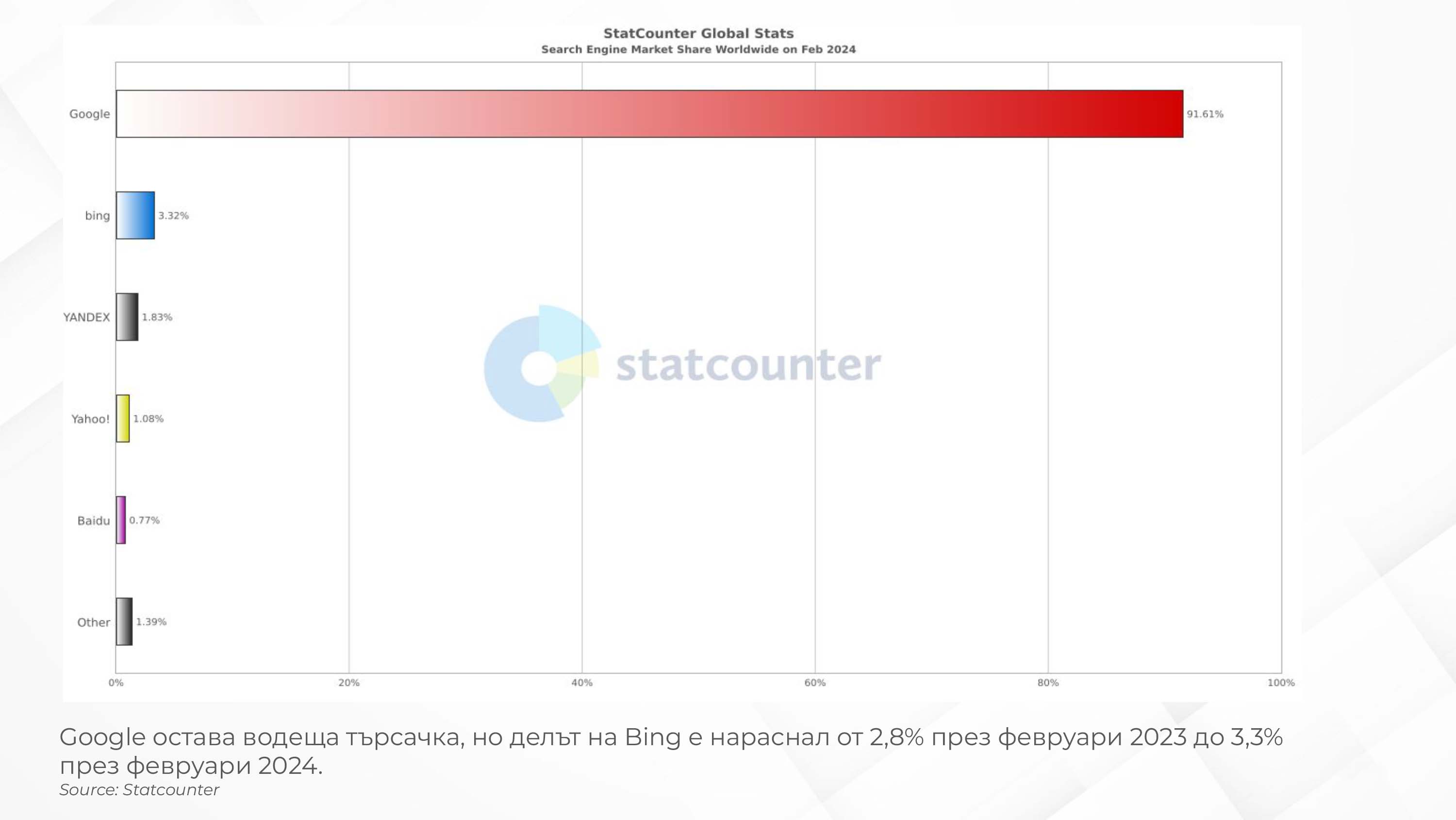 Bing, от своя страна, бележи ръст през последната година в световен мащаб. Има обективни причини за това: