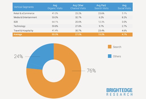 Трафик: Органичният трафик остава водещ канал [във всички разгледани индустрии в изображението].