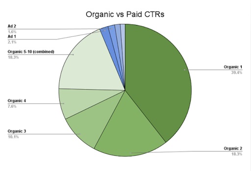39.4% за първа органична позиция спрямо 2.1% за платена.