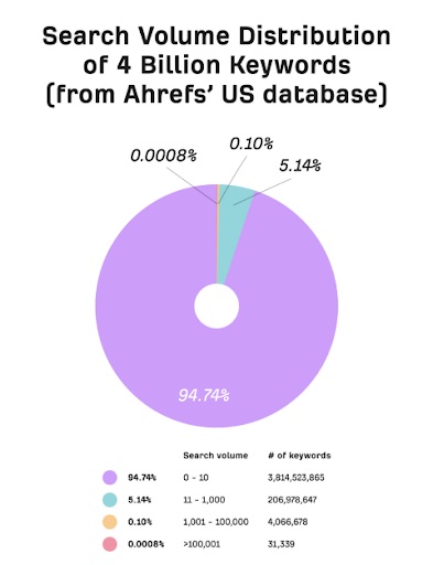 - Близо 4 млрд ключови думи се търсят между 0-10 пъти